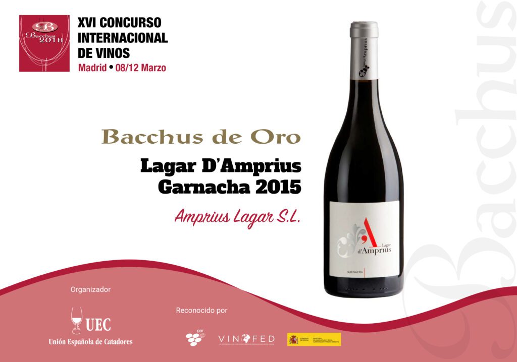 La Garnacha 2015 de Amprius Lagar, bodega del Grupo Térvalis, vuelve a estar de enhorabuena. Esta vez ha sido premiada con la medalla Bacchus de Oro, distinción otorgada en el XVI Concurso Internacional de Vinos Bacchus 2018, el único de España reconocido por la Organización Internacional de la Viña y el Vino (OIV).